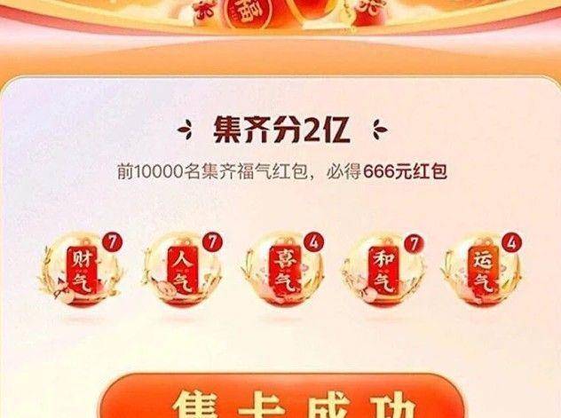 首先我们需要集齐五张福气卡才能合成一张牛气卡,多做任务获得更多的抽卡机会,获得更多的福卡,福卡一共有五种,人气、喜气、和气、运气和财气。集齐这五种卡片之后,就可以合成一张福牛卡了。所以我们只有不断的抽卡才能获得合成牛气卡的机会;在进入到合成第二阶段合成牛卡的阶段后,五种福牛卡:家庭牛、事业牛、身体牛、学习牛、爱情牛。我们需要去做任务获得五福卡,只有不断通过五个福卡合成才能获得爱情牛;牛气卡也是可以通过送给好友去集齐的,如果你有的好友没有,好友没有的你有,就可以互相去交换达到目的。