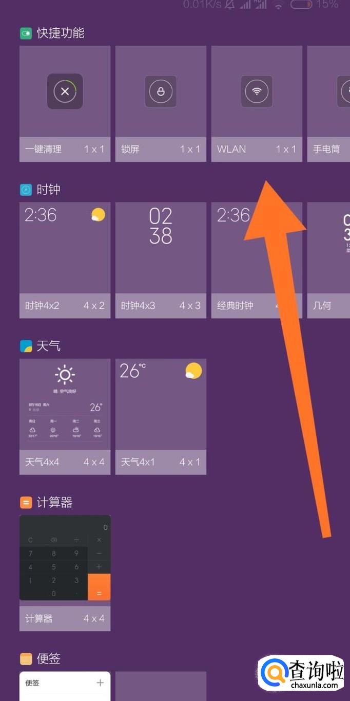 点击小工具图标后,小工具的快捷方式就会自动添加到手机桌面。