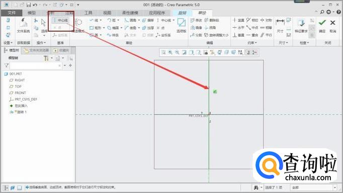设置中心线,点击“中心线”,设置旋转轴,如图所示。