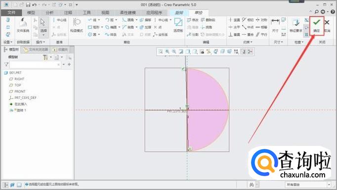 在草绘页面点击确定即可完成草绘进入旋转页面,如图所示。