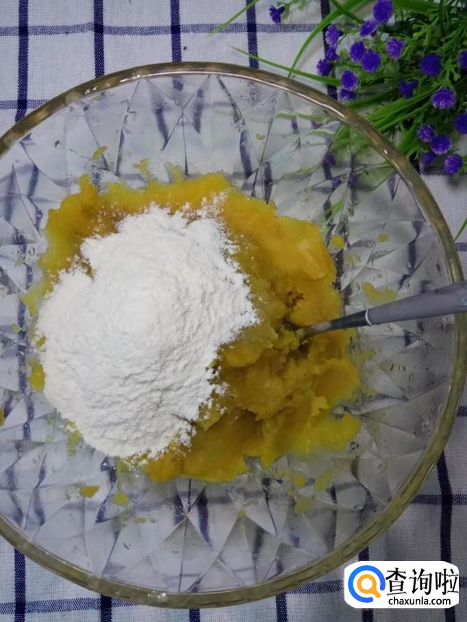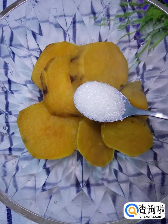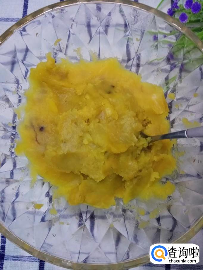 加入适量白糖,用勺子压成红薯泥。