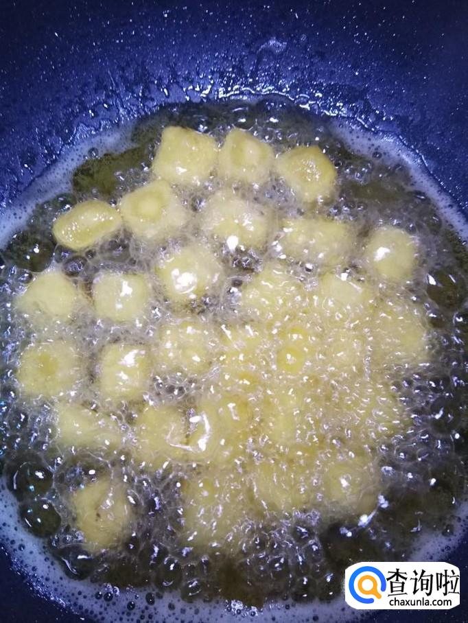 锅中放油,油温五成热,放入锅中,小火慢炸。