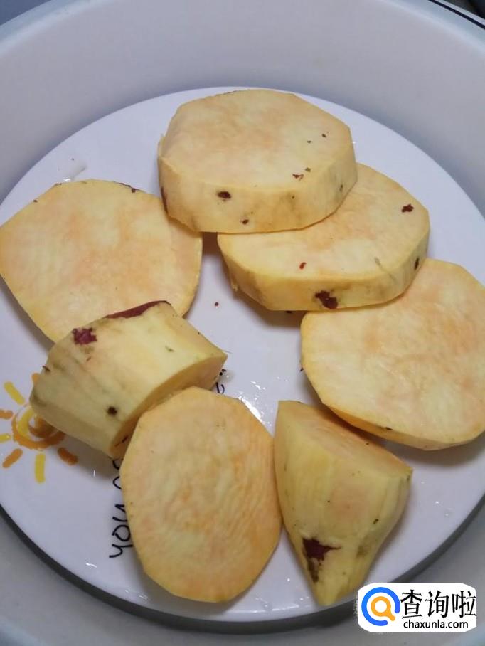 取一个红薯,洗净去皮,切成块。