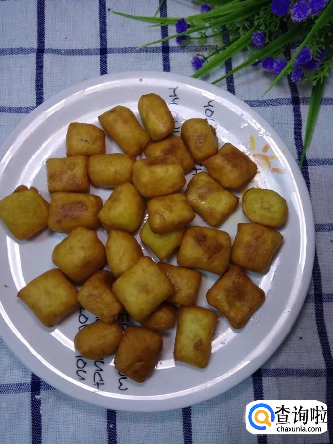 炸至金黄,捞出装盘,即可食用,香甜可口,非常好吃。