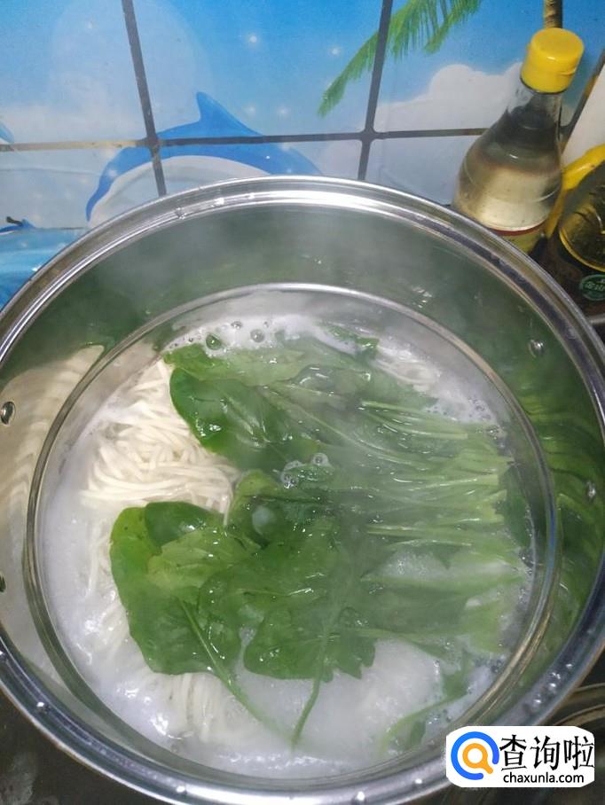 汤锅中烧开水,然后下入面条和菠菜,煮熟捞出,放入碗中,然后将做好的酱,浇在上面,搅拌均匀,就可以吃了。
