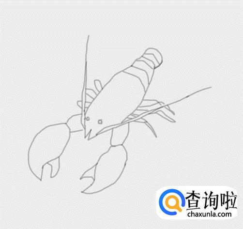 在龙虾的身体两侧画出龙虾的腿部,如图所示: