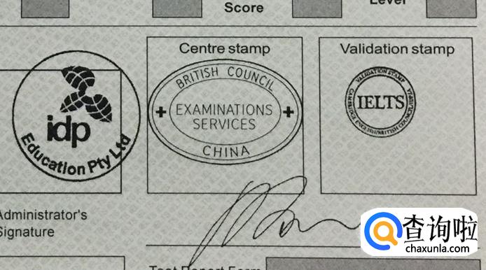 第二,值得一提的是雅思成绩单右下方的考官签名和印章,必须做到清晰真实,由于上文提及雅思版本太多,此处仅展示一种样式供参考。