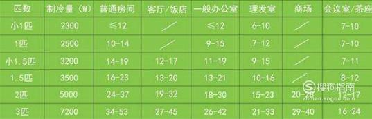 一般来说1匹的制冷量大致为2000大卡,以国际单位换算应乘以1.162,故单位时间内一匹制冷量为2000×1.162=2324W。这里的W(瓦)即表示制冷量。1.5匹的应为2000×1.5×1.162=3486W,依此类推,大致能判断空调的匹数和制冷量。一般情况下制冷量2300~2600W都称为一匹,3200~3600W为1.5匹,4500~5500W为2匹。