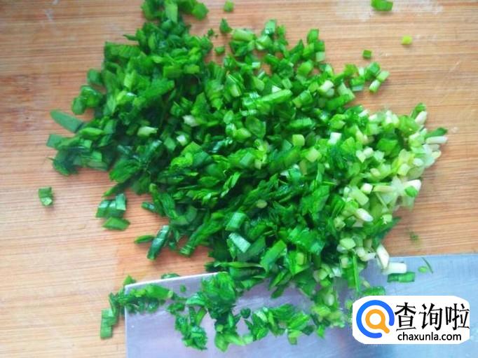 韭菜一小把就可以了,不要太多,稍稍提提鲜就行,清洗干净,浸泡半小时,然后控干水分切成韭菜末。