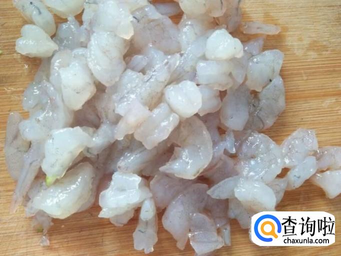 我买的是剥好的鲜虾仁,买回来之后清洗干净,将虾仁上残留的虾线全部挑下来,再次清洗干净,然后一个虾仁切两下。