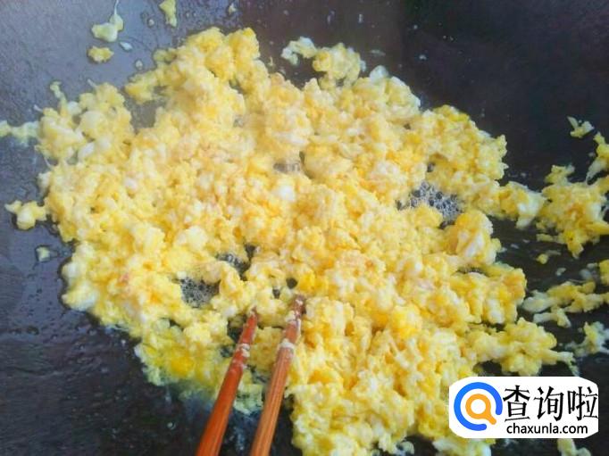 锅里倒油烧热,把鸡蛋打进去,化开,做成鸡蛋碎放凉。