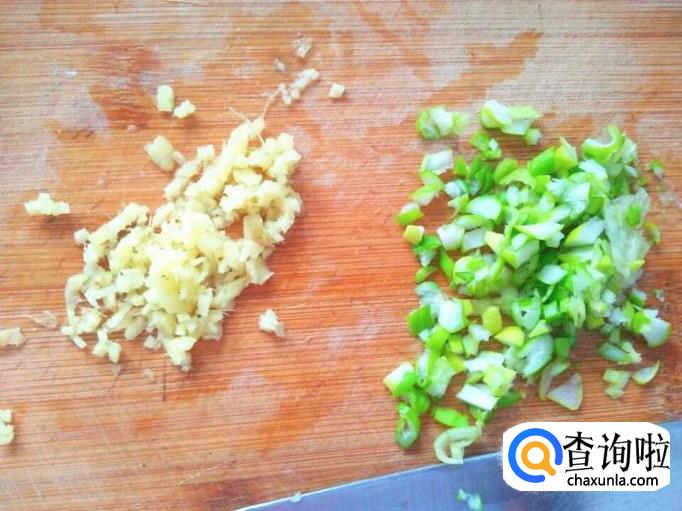 生姜去皮切成末,小葱切成末。