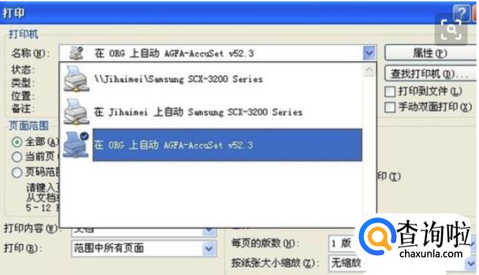 选择打印机。