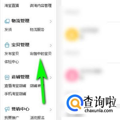 在这页面的左侧这里找到并且点击:出售中的宝贝,