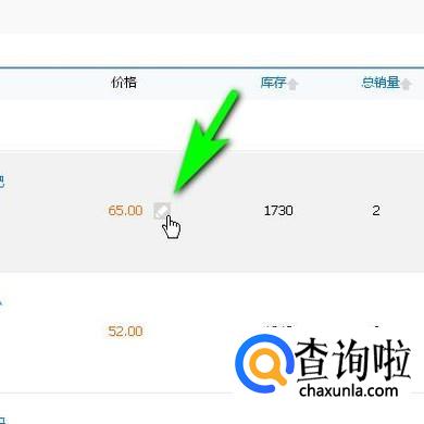 跳转到出售中的宝贝这个页面中,在这里展示着店铺所有上架的商品。找到需要修改价格的商品。看红色价格的右侧,这里有一支笔的图标,鼠标点击此图标