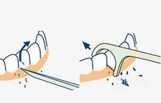 把牙线拉入两牙之间,再慢慢滑进牙齿与牙龈交接的缝内。慢慢的牵动牙线从牙根向牙冠方向移动,紧贴牙面形成“C”字形后,采取拉锯式的动作,刮擦牙缝。