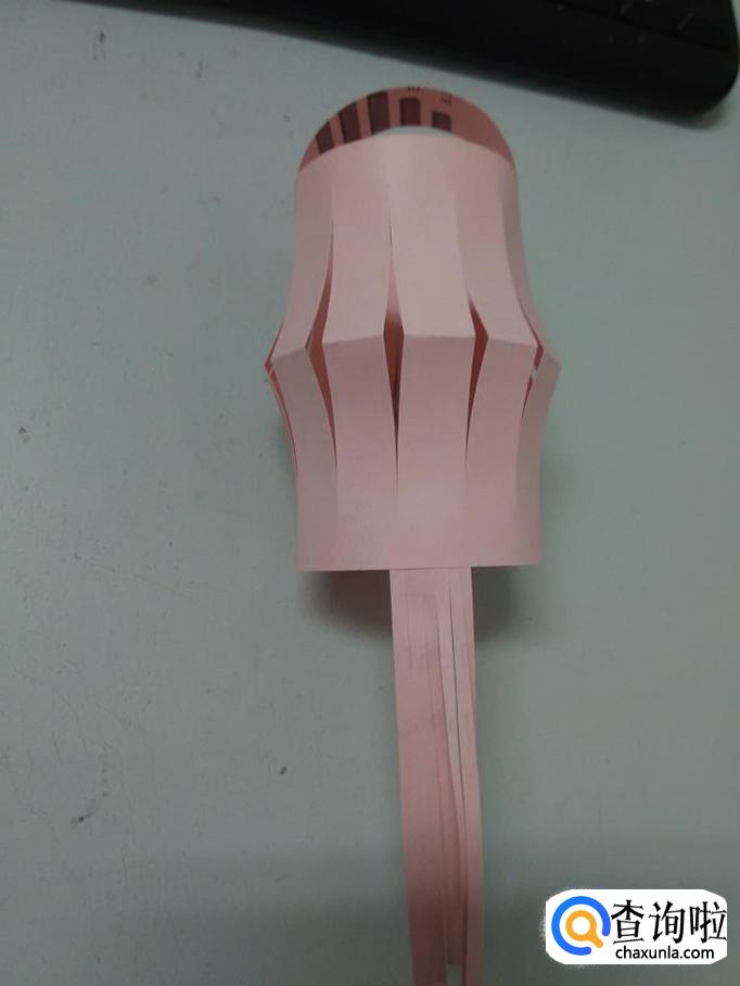 把灯笼把粘在灯笼上方,把灯笼穗粘在灯笼下方,一个漂亮的小花灯就做好了。