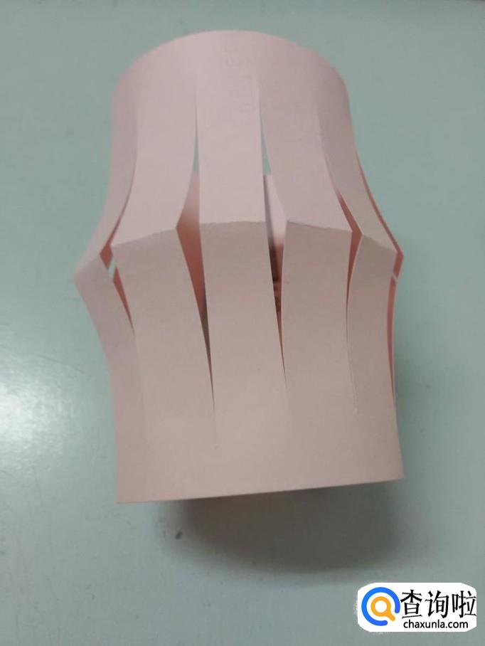 在纸的上下两端抹上胶棒,把纸粘成一个筒状,表示灯笼的肚子。