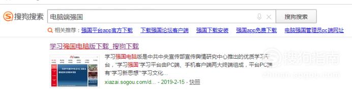 在搜索里输入电脑端强国,找到第三方软件下载的地址,下载好之后安装。