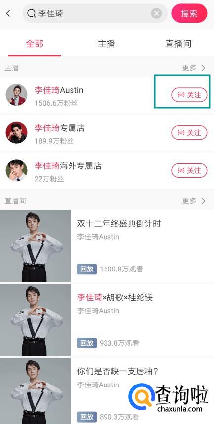 如果他没上播就点击关注,上播了会有通知,如果刚好在直播就可以直接进入直播间。