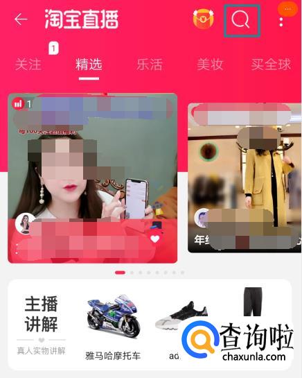 如果首页看不到李佳琦的直播,就在右上角有一个搜索,点击一下。