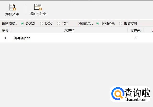 打开已经安装好的转换工具后,然后在下面添加需要识别的文件