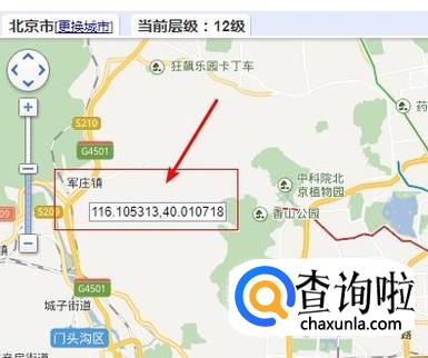 在地图上随意移动鼠标,就会出现相应位置的经度和纬度