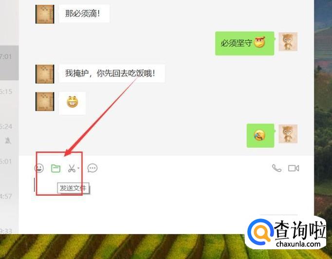接下来,打开与微信好友的聊天页面窗口,点击“发送文件”按钮。