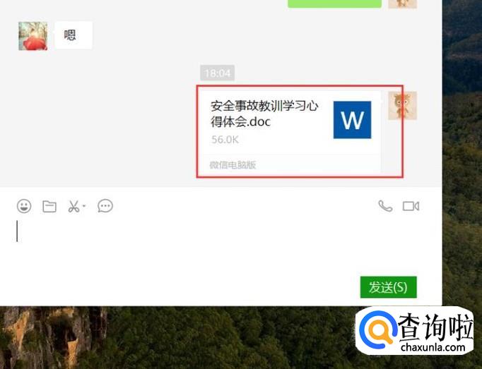 最后,我们就在聊天信息窗口中看到文件已经发送成功了,好友也可以登录微信电脑版下载该文件。