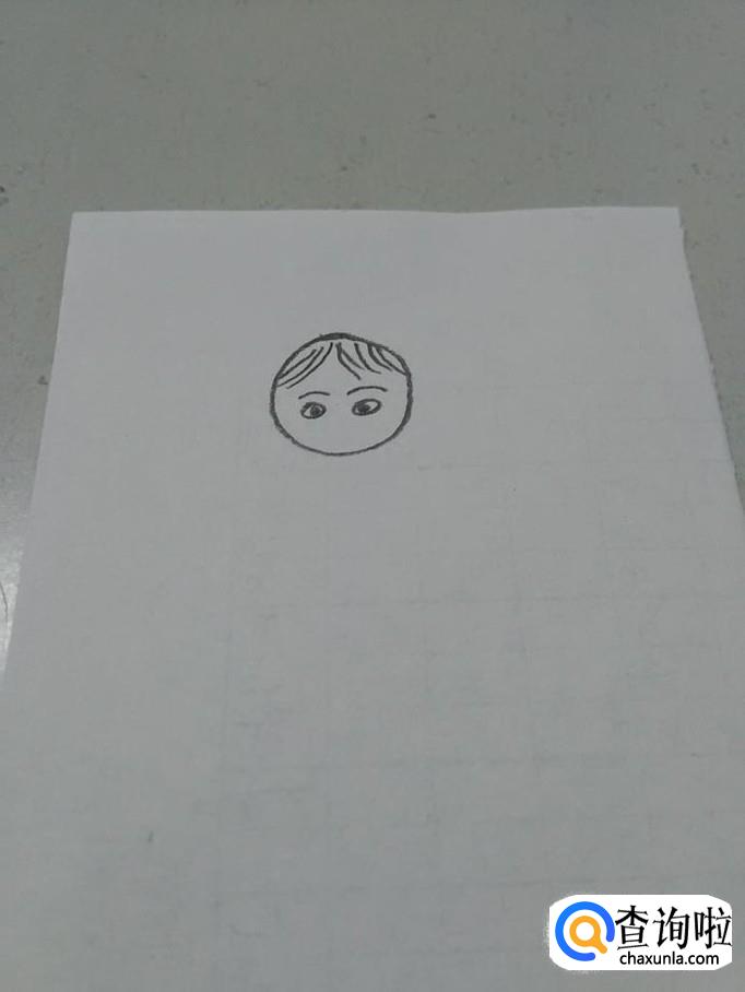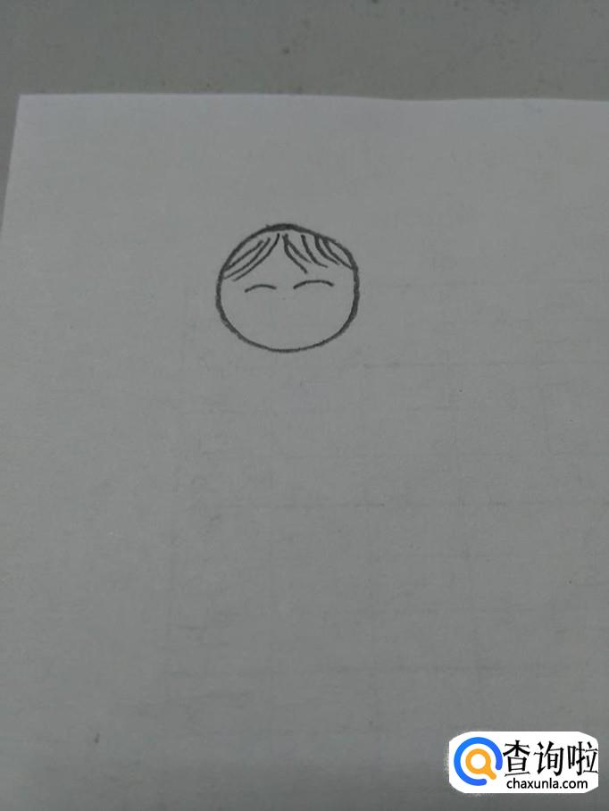 在眼睛下面,画一短一长两条弧线,表示鼻子和嘴。