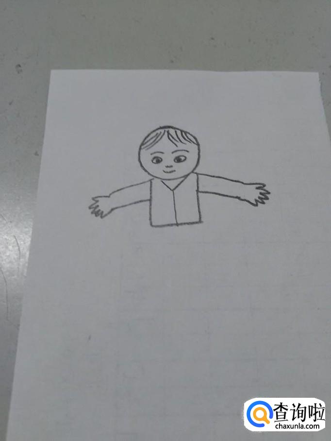 从男孩头部左右两侧,各画几条弧线,表示两个小辫子,男孩就变成了女孩。