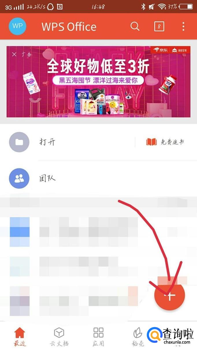 首先打开wps这个app,如图1所示。进入wps后,你会看到一个新的界面,如图2所示。
