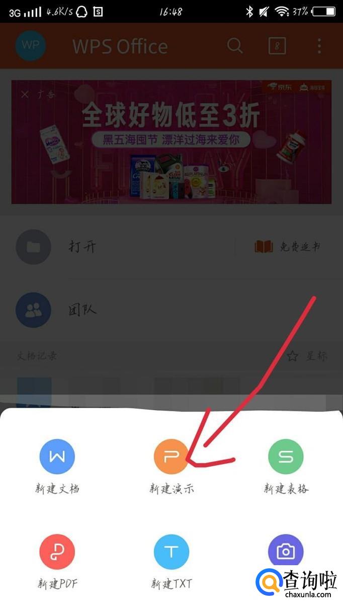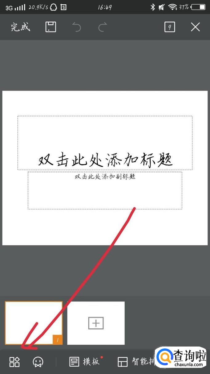 点击右下角的“+”选项,如图1箭头所示。你会看到出现一个新的界面,点击“新建演示”选项,如图2箭头所示。