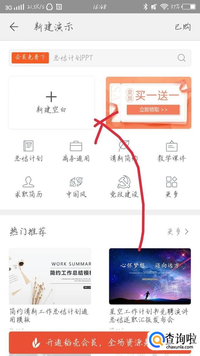 你会看到出现一个新的界面,如图1所示。点击“新建空白”选项,如图2箭头所示。