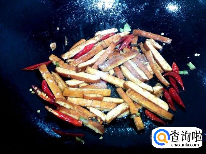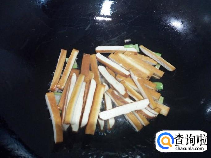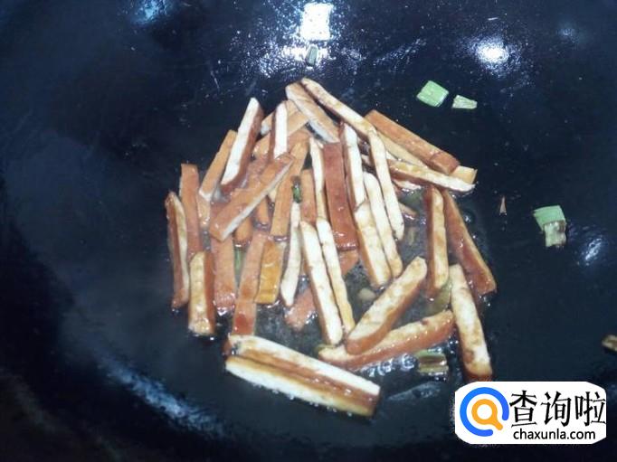 锅里放入油加热,油热后放入葱,姜爆锅,放入豆干翻炒。