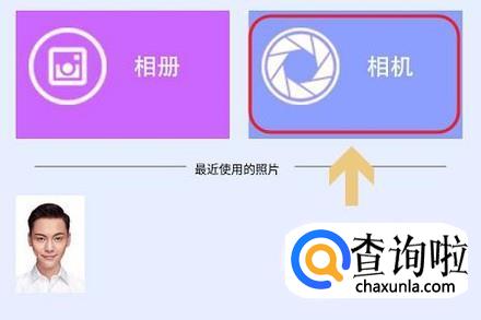 点击进入到该小程序,我们点击功能列表中的“百变证照”,然后系统会切换至上传照片或者拍照页,我们点击右侧的“相机”;