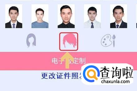 拍完照以后,系统就自动切换至了照片修改页面,我们分别可以给自己修改发型、或者也可以根据要求给证件照更换底色,如图所示...