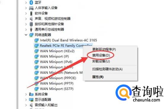 打开之后,右击图示选项,然后点击“禁用设备”,然后在重启设备,连续重复几次即可。