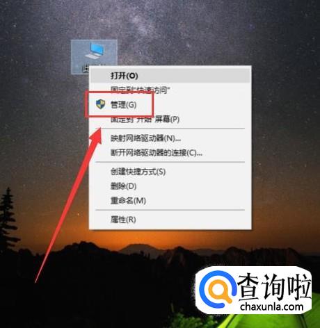 打开电脑,右击我的电脑,点击“管理”,如图所示。