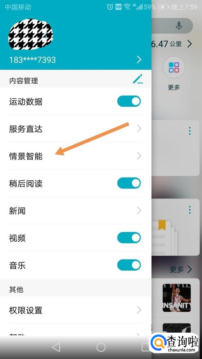 点击头像后,在下方会出现情景智能,将其打开,如下图。