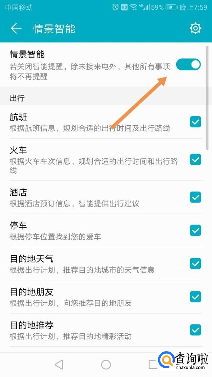 点击右边的关闭后,华为荣耀手机的情景智能就关闭了,如下图。