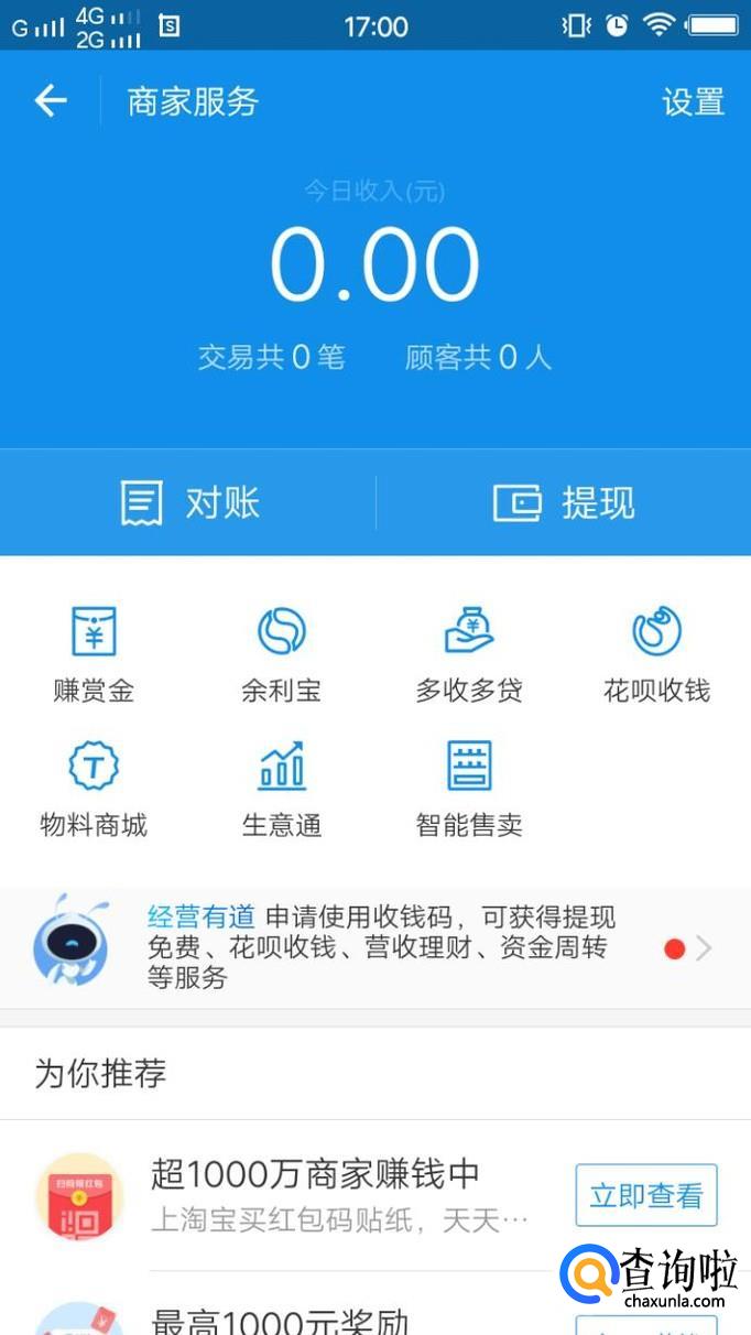 点击“商家服务”,跳转页面后,点击设置。