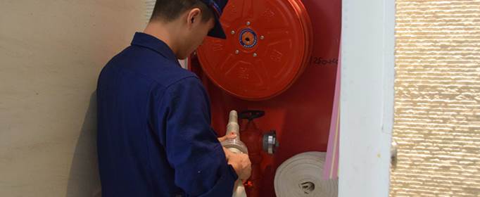 1、打开消火栓门,按下内部启泵报警按钮(按钮是启动消防泵和报警的)。