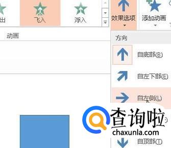 选中矩形,再点开:动画选项卡,设置从左侧飞入的出现动画。