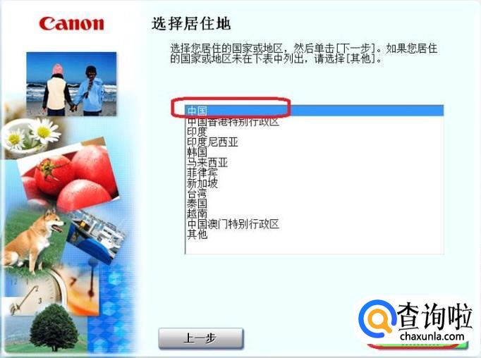 此时,光盘就会运行,进入安装打印机驱动程序,会提示“选择居住地”,选择之后点击下一步。