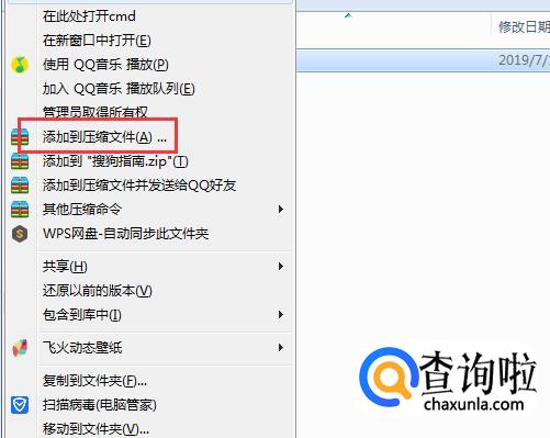 选中文件,鼠标右键选择【添加到压缩文件】;