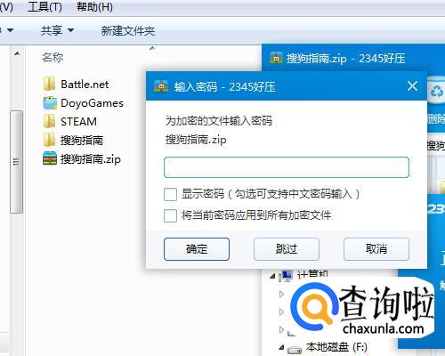 输入要设置的密码,确认无误后,点击确定,文件就会被压缩到指定文件夹并加密;