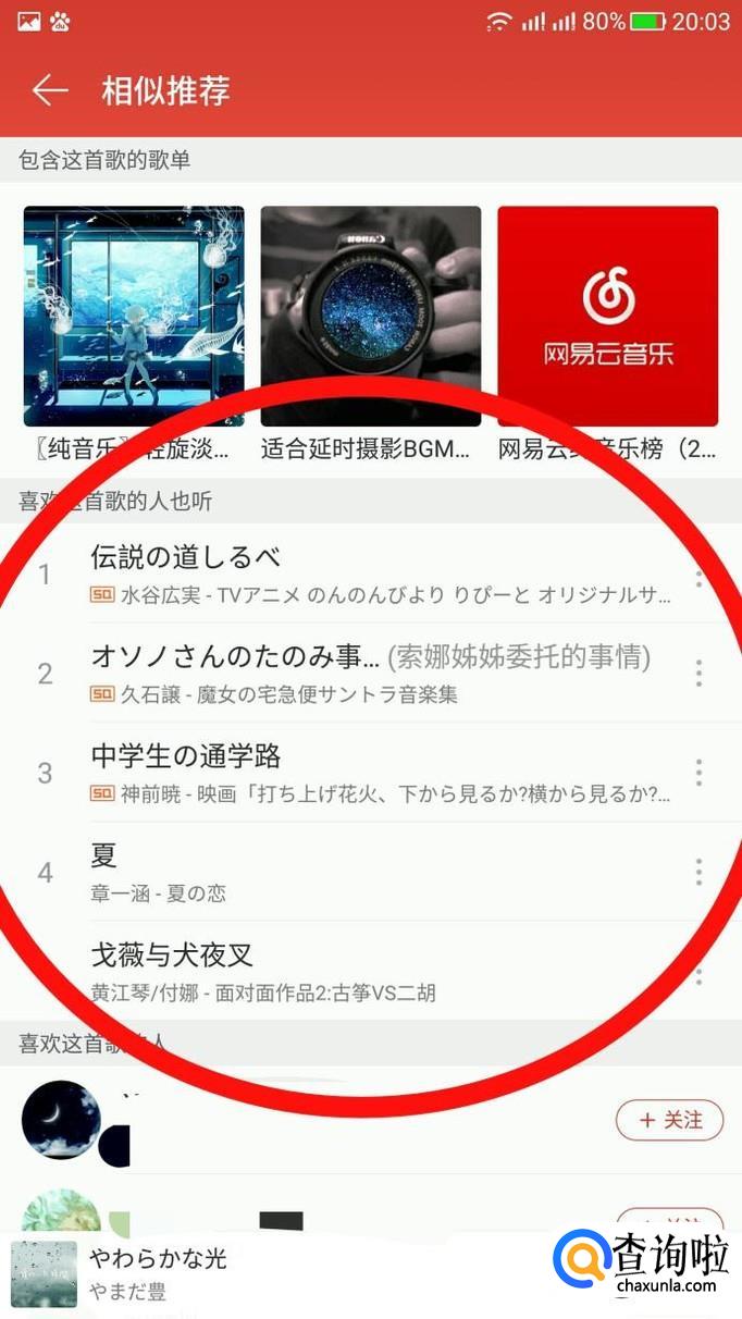 寻找类似歌曲,都可以通过音乐类的APP来寻找,此处以网易云音乐为例,方法相同。