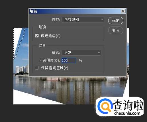 再按SHIFT+F5,调出填充面板,在“内容”这里,设置为“内容识别”再点确定。