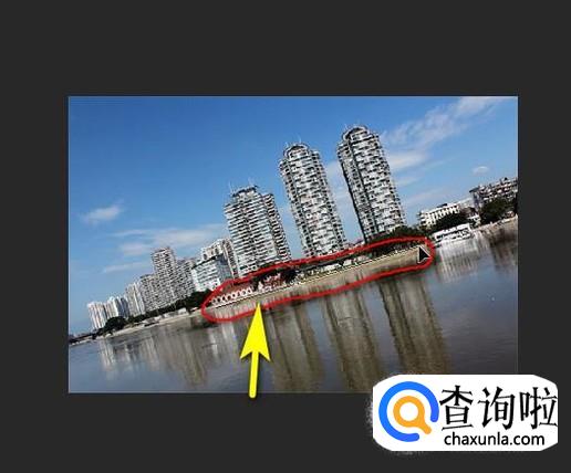 按L键,调出套索工具,如图所示。选中这一处留白。